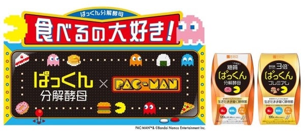 そんなレトロかわいさのある見た目で若年層にも人気の「パックマン」と、食べることを楽しむ「ぱっくん分解酵母」の親和性の高さから今回のコラボが実現しました。食べるのが大好きな方、体型を気にされている全ての方に是非お試しいただきたい商品です。