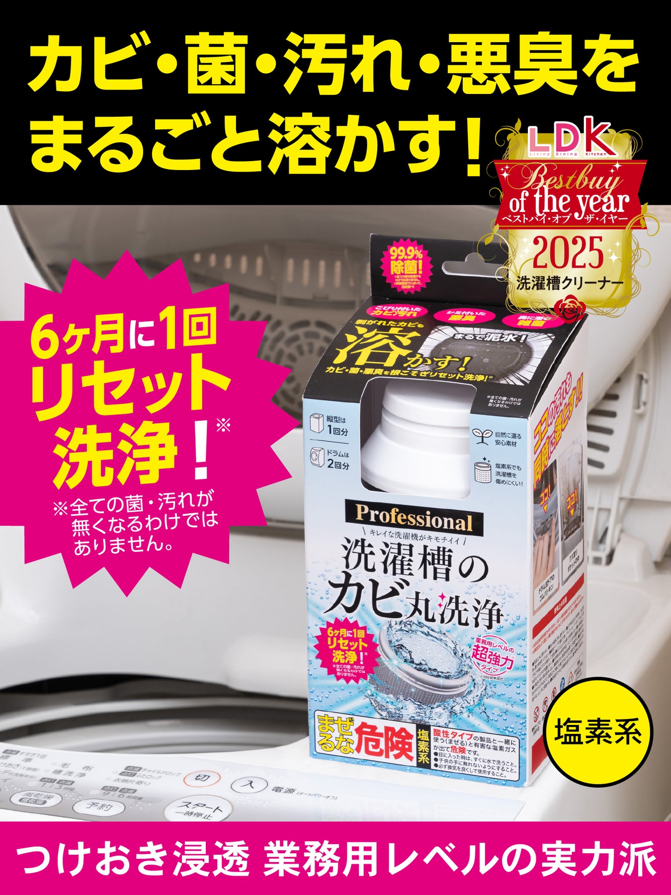 業務用レベルの超強力(*1)洗濯槽クリーナー。こびりついたカビ汚れ・悪臭・奥に潜む雑菌に。剥がれたカビも溶かし、カビ・菌・悪臭を根こそぎリセット洗浄(*2)します。6ヶ月に一度の使用がおすすめ。