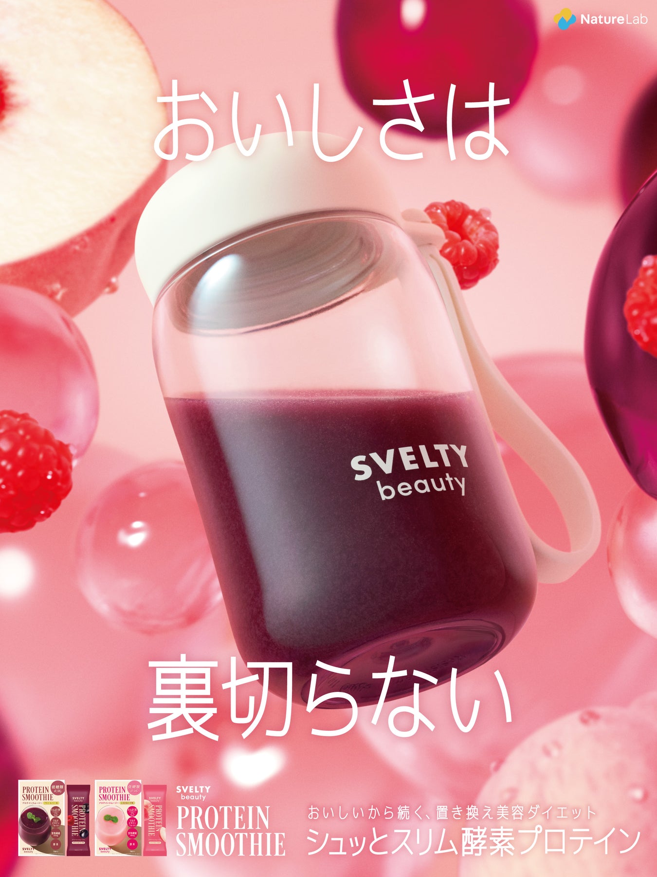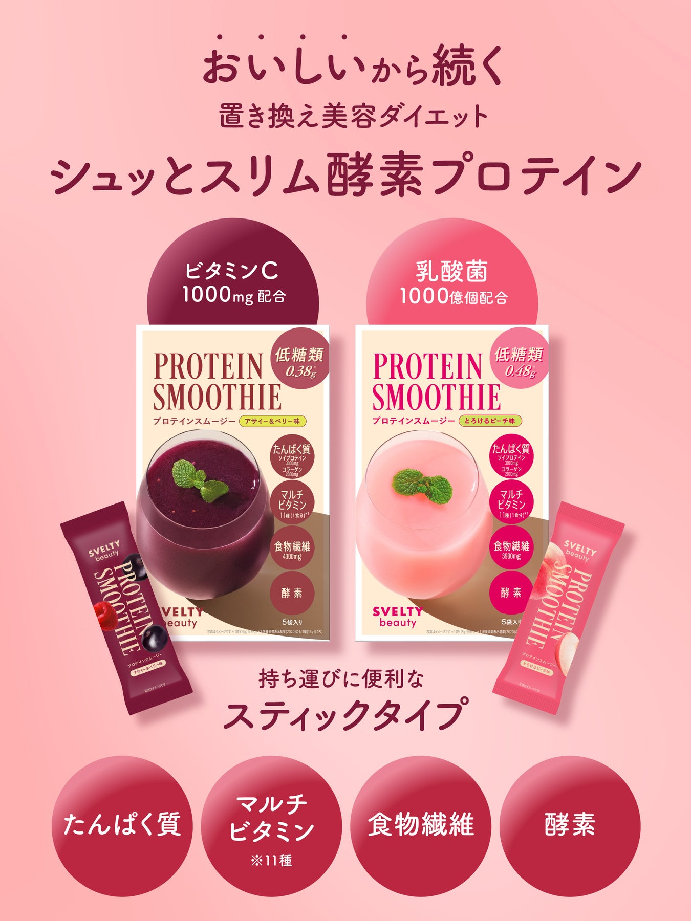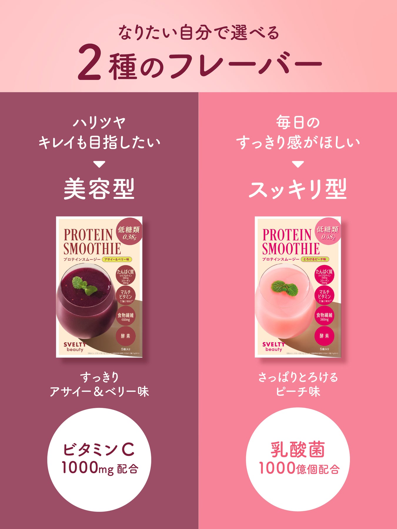 欲しい栄養一杯でまるごと。管理栄養士監修のプロテインスムージー〈美容タイプ〉。アサイー&ベリー味。