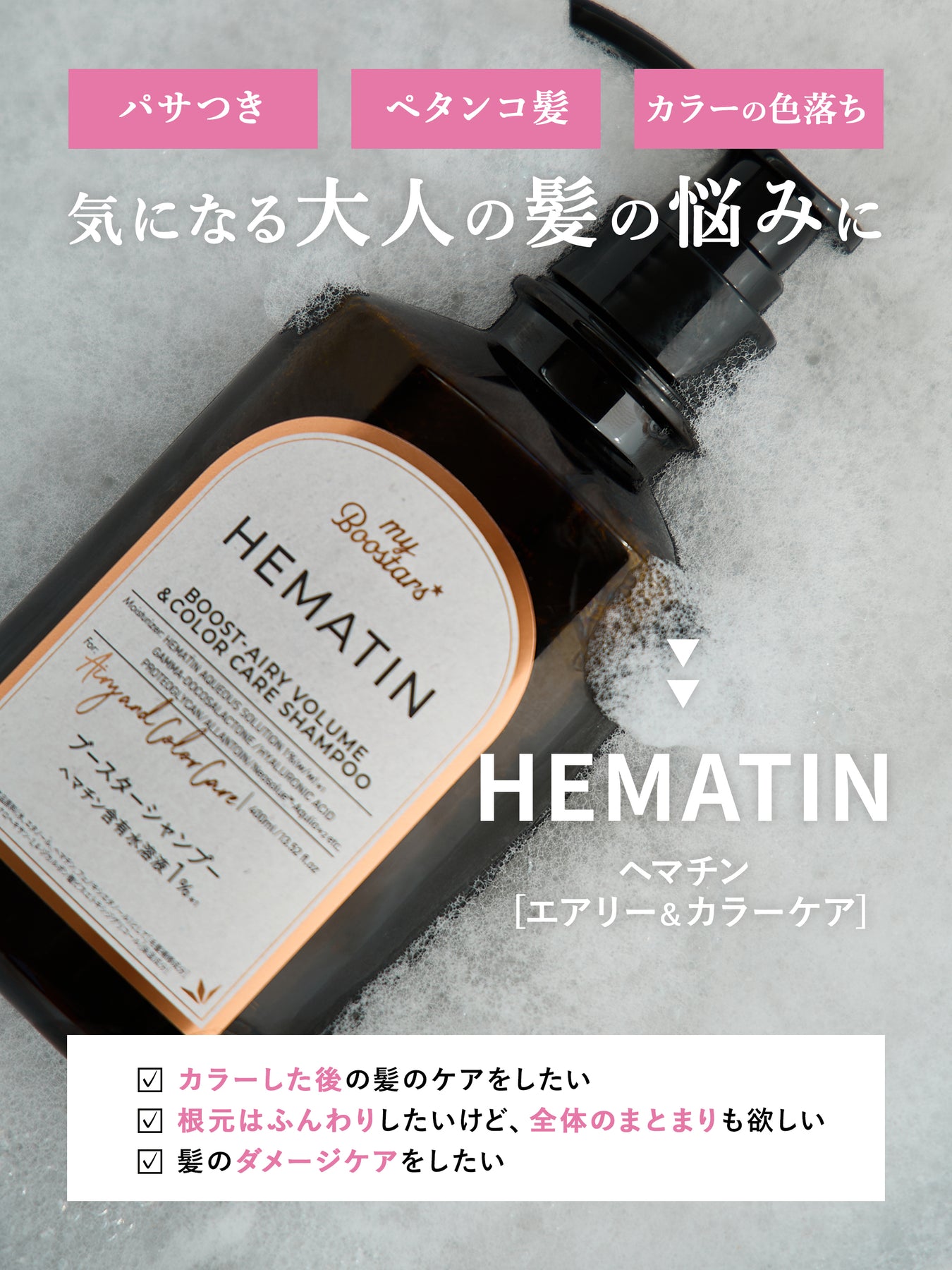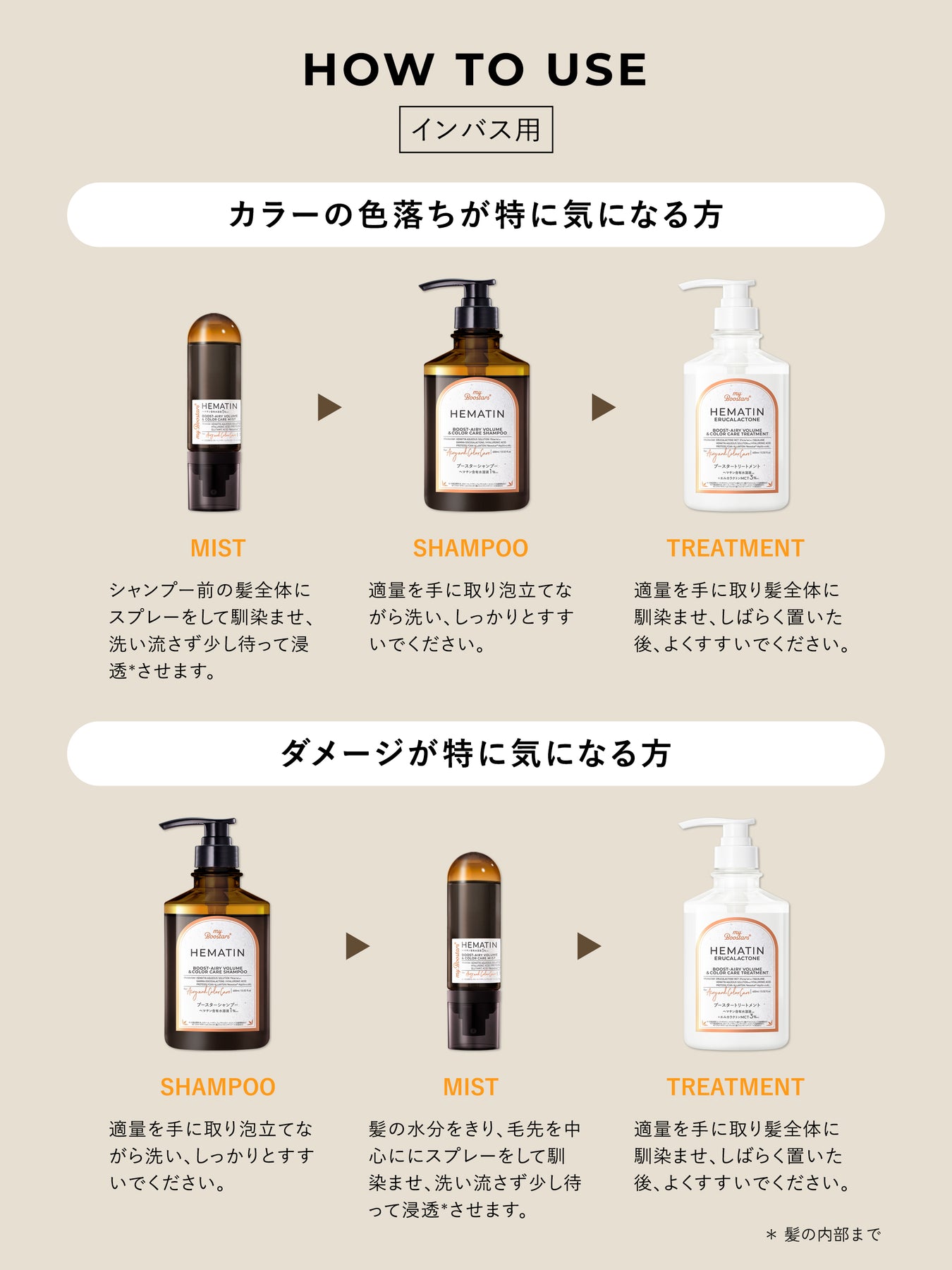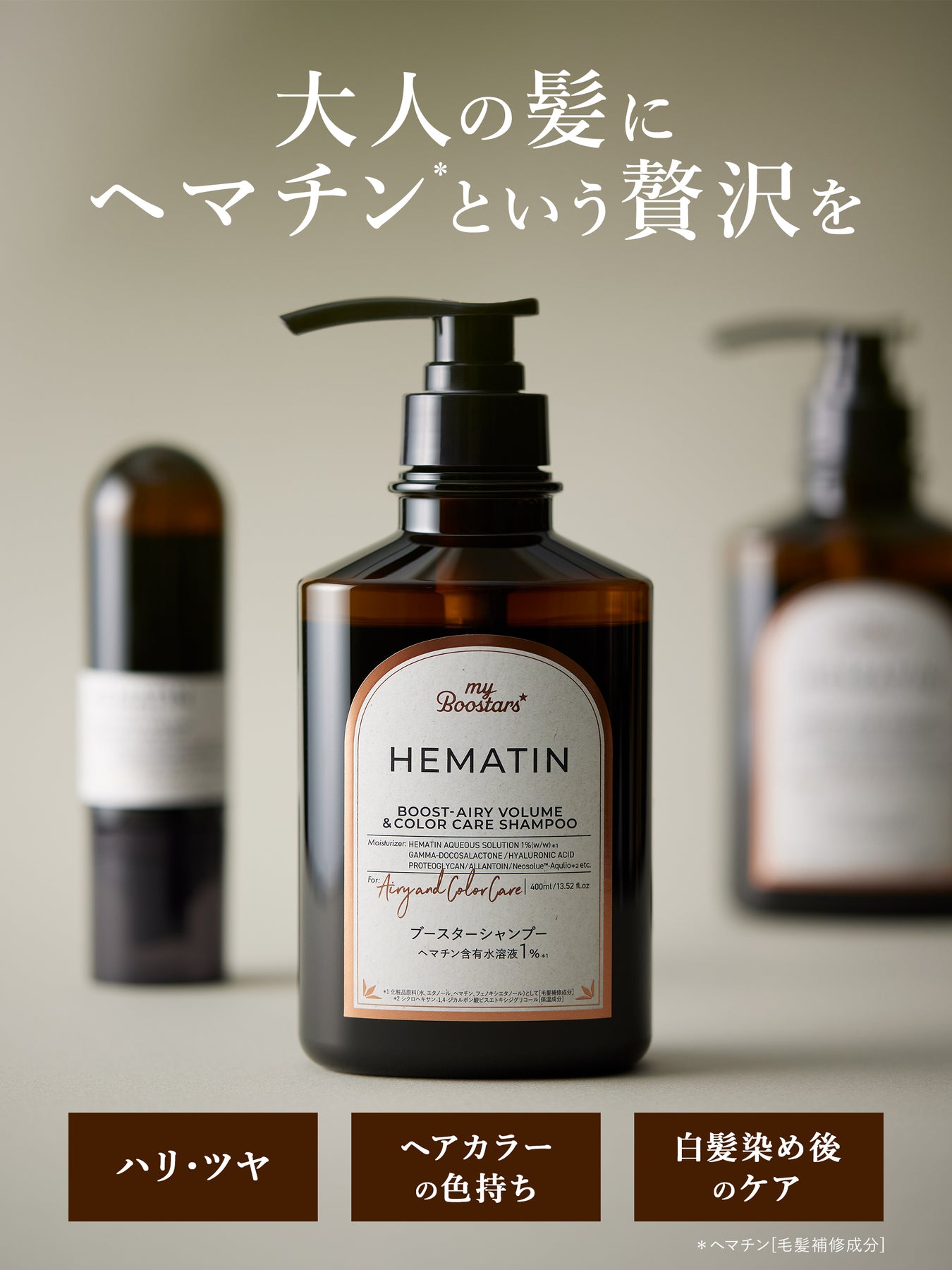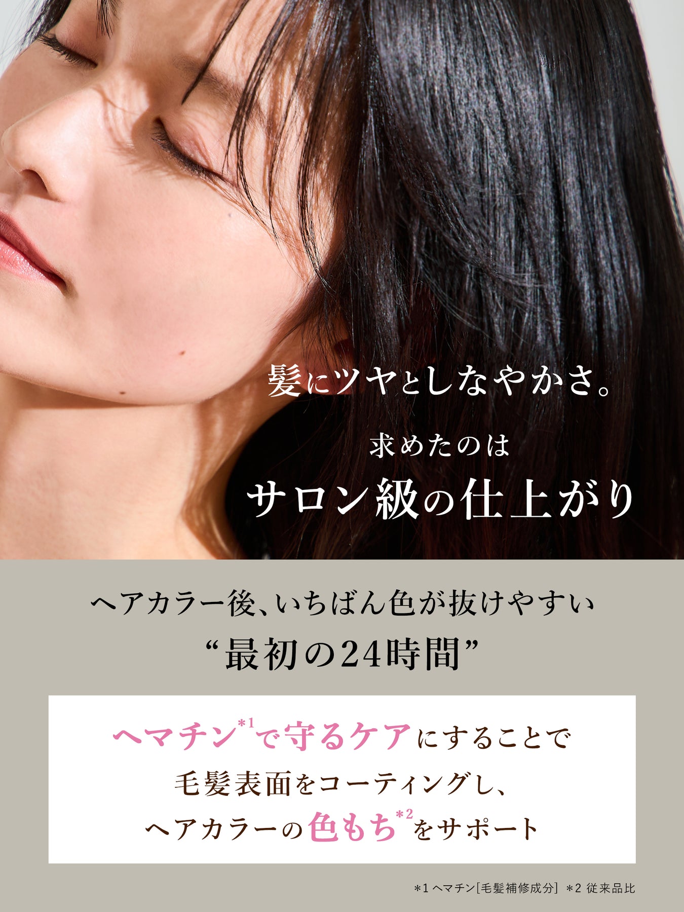 【ヘマチン(*1)】カラーした髪の色落ちを抑え、ダメージを受けた髪を補修する