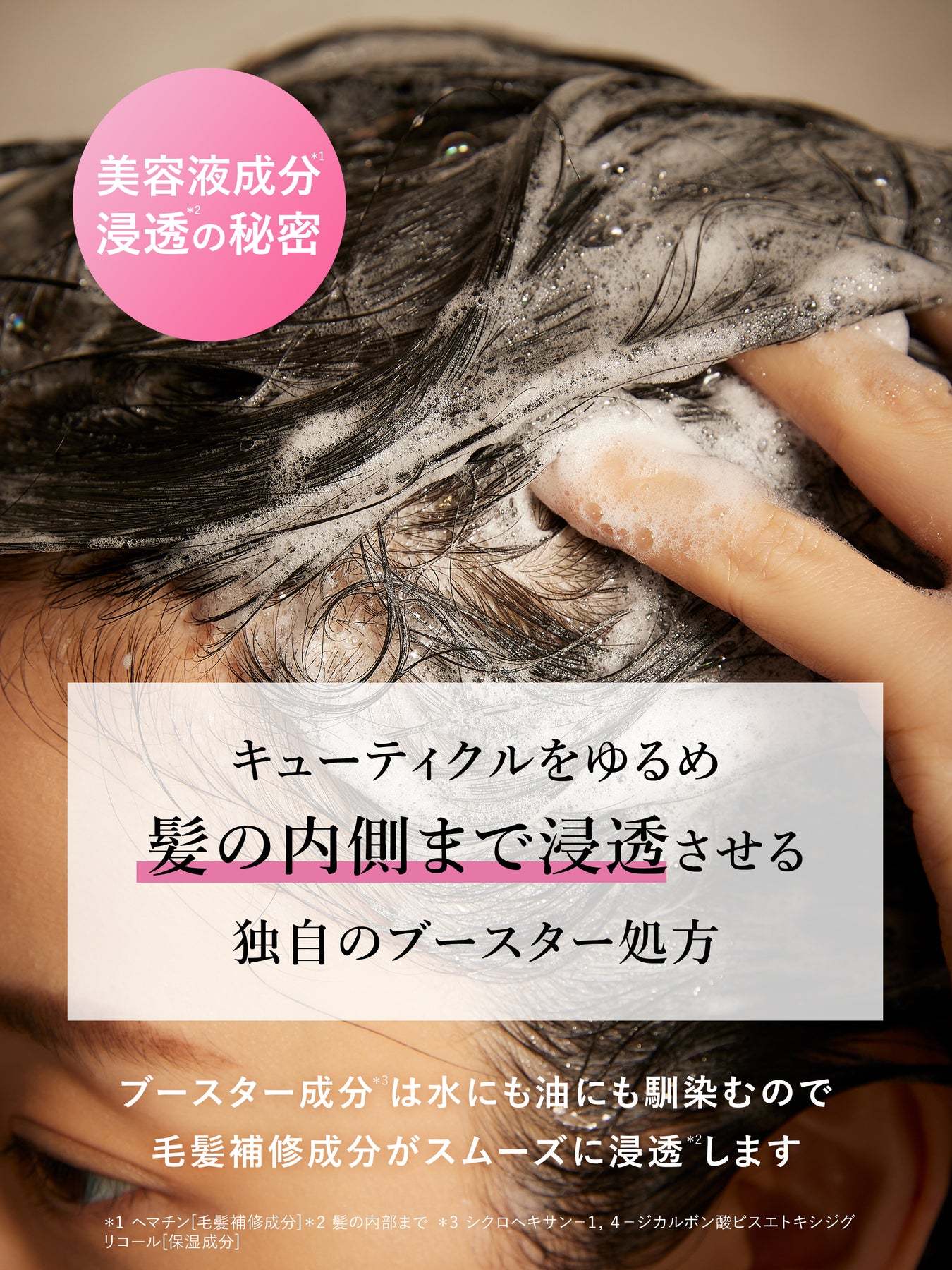 【ブースター(*2)】美容液成分(*1)の髪内部への浸透(*3)を促進する
