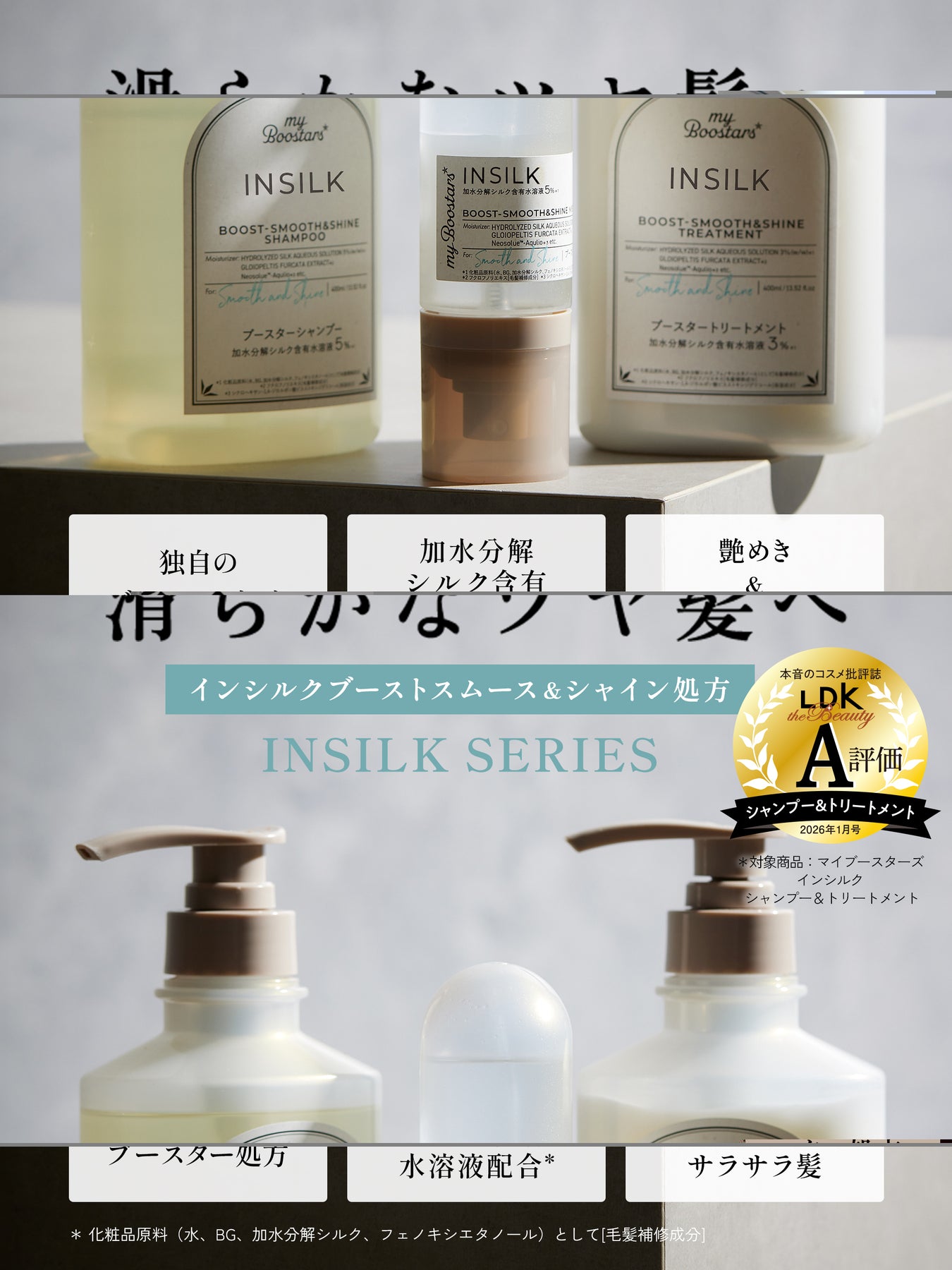 キューティクルを補修し滑らかなツヤ髪へ導く、加水分解シルク(*1)配合シャンプー。