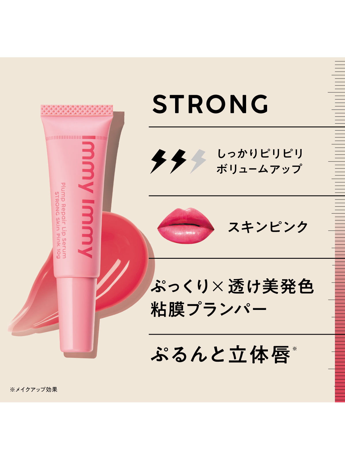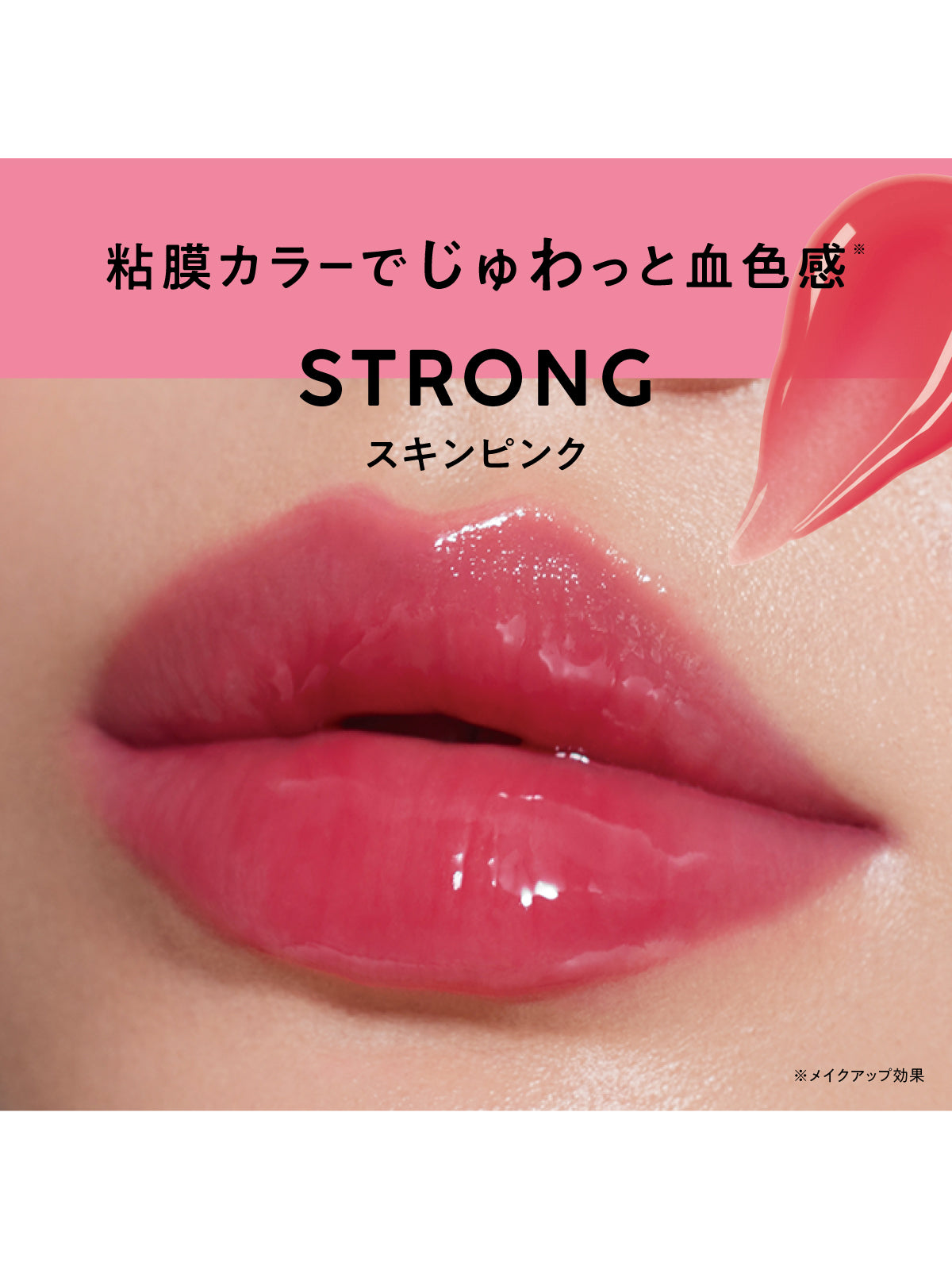 ストロングスキンピンクは、粘膜カラーでじゅわっと血色感(*2)を演出します。