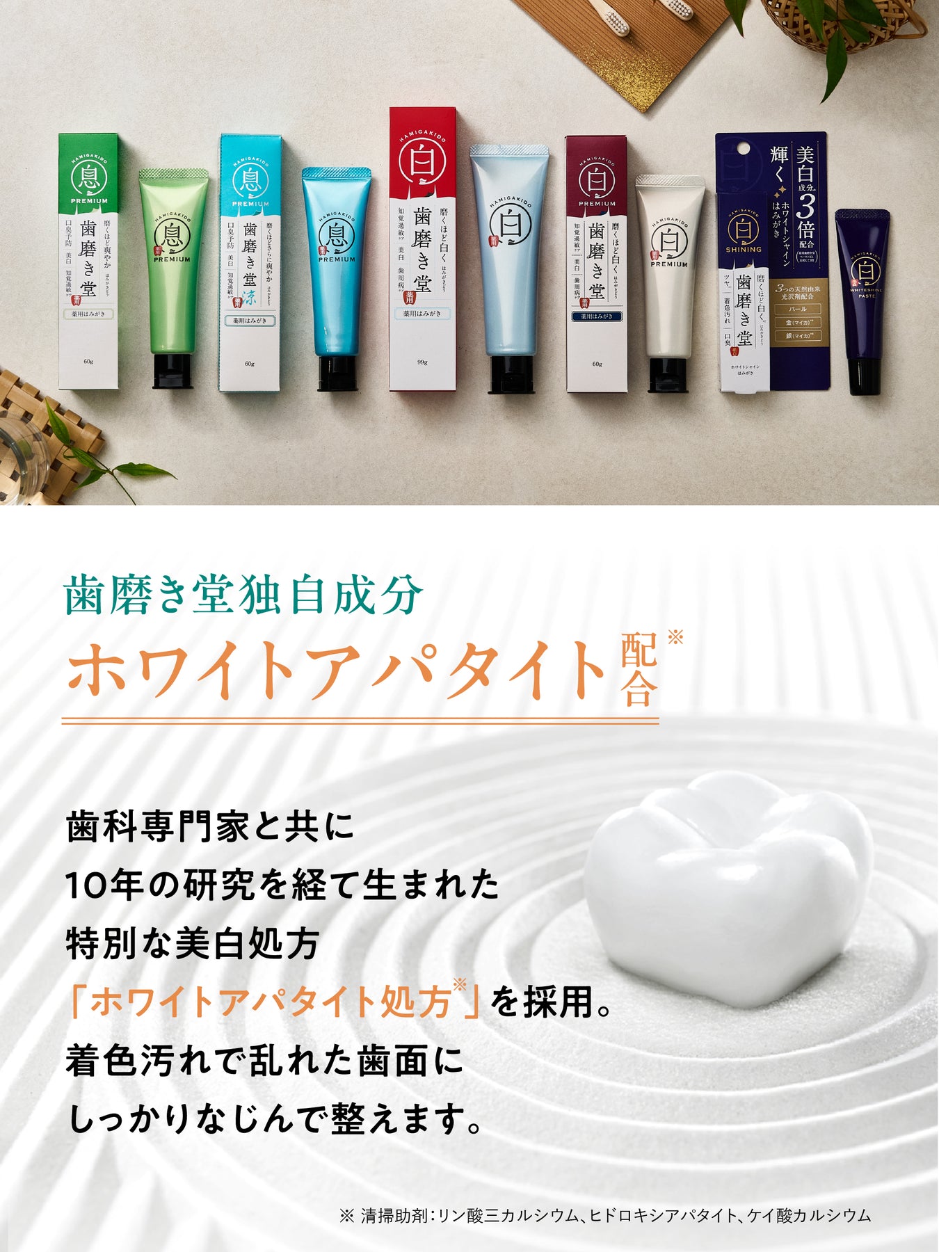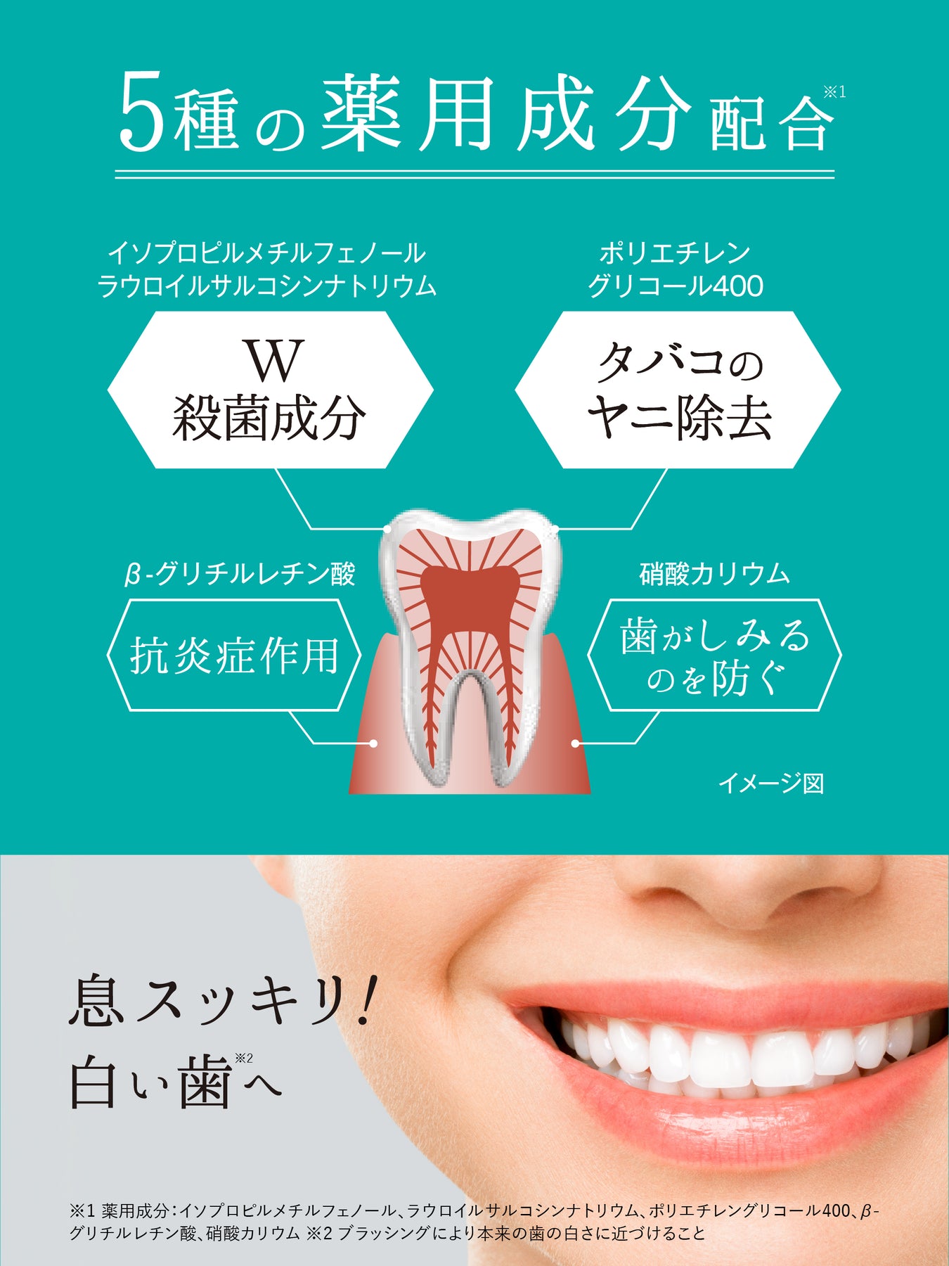 磨くほどさらに爽やか。5種の薬用成分配合の薬用はみがき。口臭予防・美白・知覚過敏ケアに。